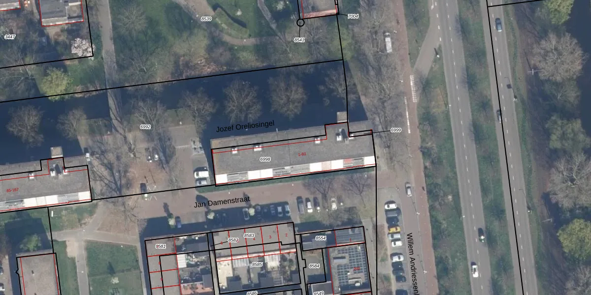 Jozef Oreliosingel 5 is gelegen op kadastraal perceel SDM01Q6998. Deze kadastrale aanduiding is uniek en wordt gebruikt door het Kadaster om eigendomsrechten en andere zakelijke rechten vast te leggen. Het perceel maakt onderdeel uit van de kadastrale gemeente Schiedam.