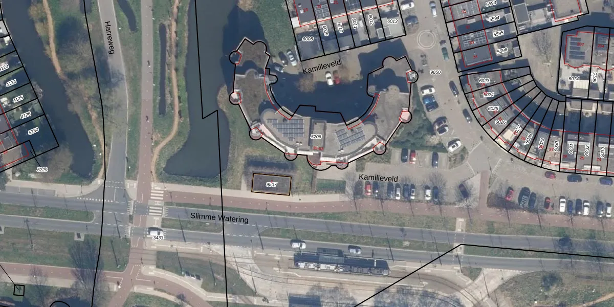 Kamilleveld 41 is gelegen op kadastraal perceel SDM01Q5206. Deze kadastrale aanduiding is uniek en wordt gebruikt door het Kadaster om eigendomsrechten en andere zakelijke rechten vast te leggen. Het perceel maakt onderdeel uit van de kadastrale gemeente Schiedam.