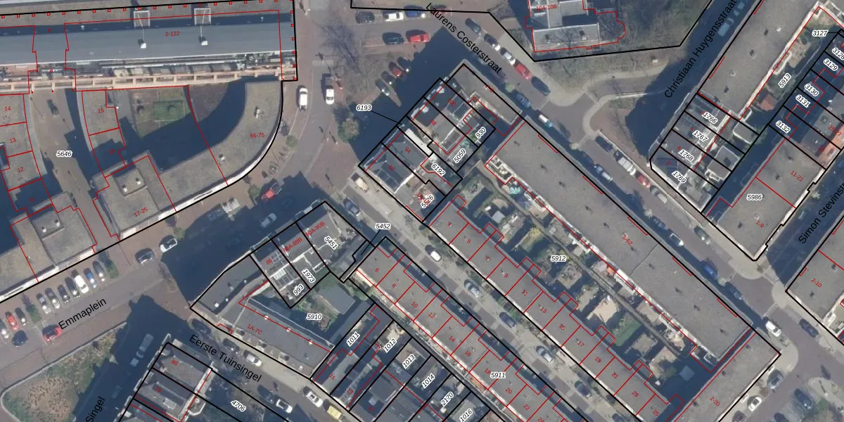Het perceel waarop het adres ligt is SDM01-I-5526. De afkorting 'SDM01' staat voor kadastrale gemeente Schiedam. Het perceel is kleiner dan gemiddeld in Schiedam. Het perceel is 158 m² groot, terwijl het gemiddelde ligt op 1011,07 m². De grootste perceeloppervlakte in de kadastrale gemeente is 53,5 ha. De kleinste oppervlakte bedraagt 0 m². Op het perceel liggen in totaal 4 adressen. De huidige grenzen van het perceel zijn digitaal in de Basisregistratie Kadaster (BRK) geregistreerd op 15-04-2011.