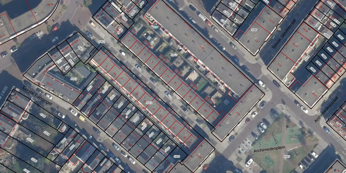 Het perceel waarop het adres ligt is SDM01-I-5912. De afkorting 'SDM01' staat voor kadastrale gemeente Schiedam. De oppervlakte van het perceel is 3035 m². Dat is groter dan gemiddeld in Schiedam, waar de gemiddelde perceeloppervlakte op 1011,07 m² ligt. Het grootste perceel in de kadastrale gemeente is 53,5 ha. Het kleinste perceel heeft een oppervlakte van 0 m². Er zijn 53 adressen aanwezig op het perceel. De laatste wijziging in het de Basisregistratie Kadaster (BRK) was op 15-04-2011.