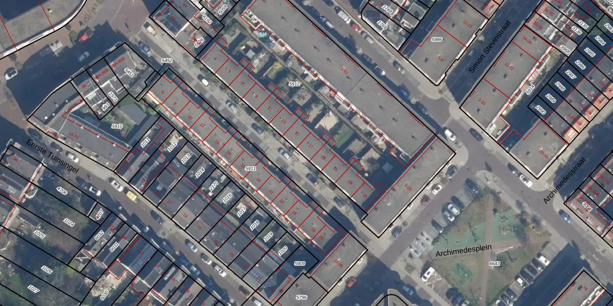 Het perceel waarop het adres ligt is SDM01-I-5912. De afkorting 'SDM01' staat voor kadastrale gemeente Schiedam. De oppervlakte van het perceel is 3035 m². Dat is groter dan gemiddeld in Schiedam, waar de gemiddelde perceeloppervlakte op 1011,07 m² ligt. Het grootste perceel in de kadastrale gemeente is 53,5 ha. Het kleinste perceel heeft een oppervlakte van 0 m². Er zijn 53 adressen aanwezig op het perceel. De huidige grenzen van het perceel zijn digitaal in de Basisregistratie Kadaster (BRK) geregistreerd op 15-04-2011.