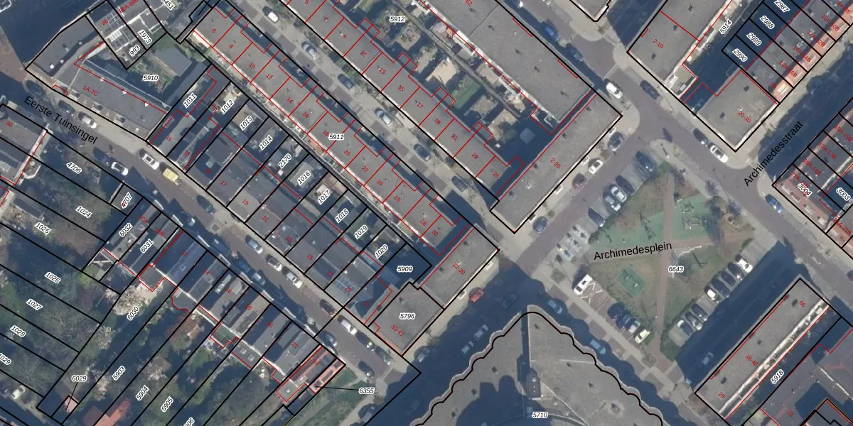 Het perceel waarop het adres ligt is SDM01-I-5911. De afkorting 'SDM01' staat voor kadastrale gemeente Schiedam. De oppervlakte van het perceel is 1225 m². Dat is groter dan gemiddeld in Schiedam, waar de gemiddelde perceeloppervlakte op 1011,07 m² ligt. Het grootste perceel in de kadastrale gemeente is 53,5 ha. Het kleinste perceel heeft een oppervlakte van 0 m². Op het perceel zijn 18 adressen aanwezig. De laatste wijziging in het de Basisregistratie Kadaster (BRK) was op 15-04-2011.