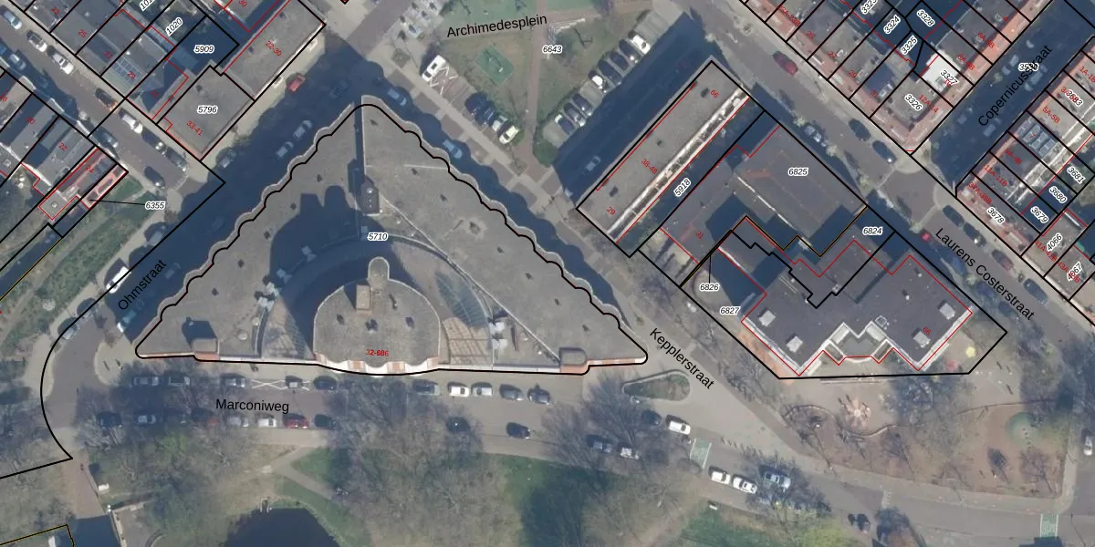 Het perceel waarop Kepplerstraat 92 staat heeft een oppervlakte van 2487 m². Dit is een zeer groot perceel. De perceeloppervlakte wordt geregistreerd door het Kadaster. Gedetailleerde informatie over de maten van dit perceel kunt u vinden in het rapport Kadastrale kaart met maatvoering van Kepplerstraat 92.