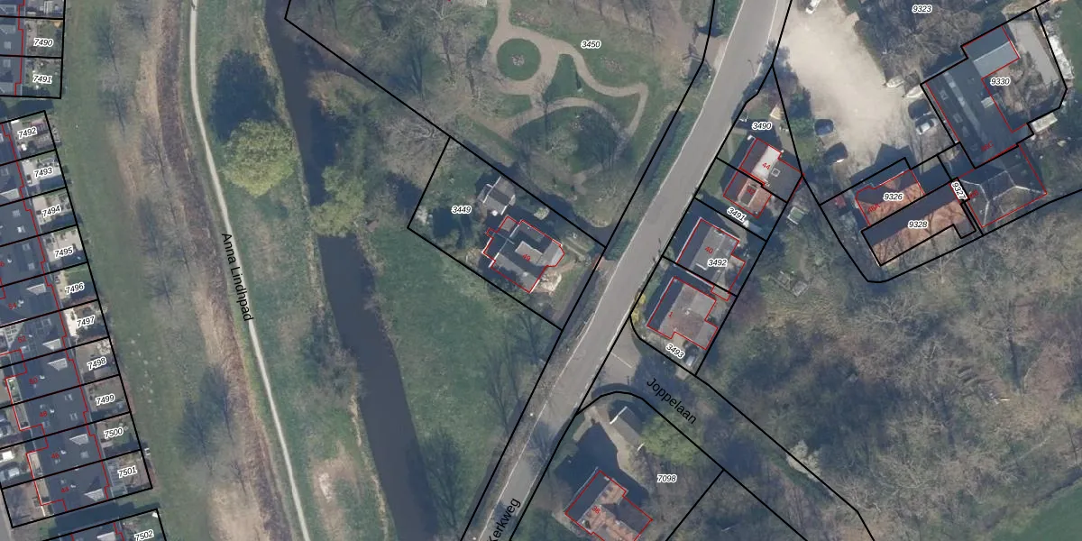 Gebruik de zoekbalk of klik op een perceel voor informatie over de adressen binnen dit perceel.