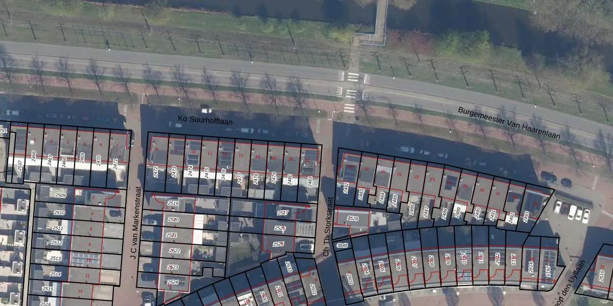Gebruik de zoekbalk of klik op een perceel voor informatie over de adressen binnen dit perceel.
