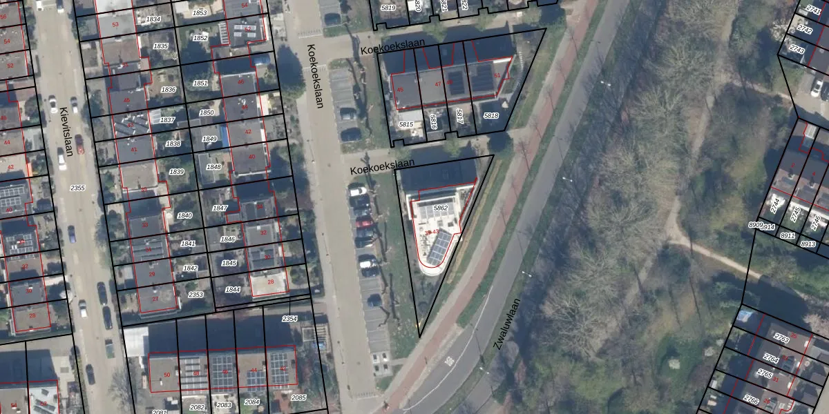 Koekoekslaan 39 is gelegen op kadastraal perceel SDM01Q5862. Deze kadastrale aanduiding is uniek en wordt gebruikt door het Kadaster om eigendomsrechten en andere zakelijke rechten vast te leggen. Het perceel maakt onderdeel uit van de kadastrale gemeente Schiedam.
