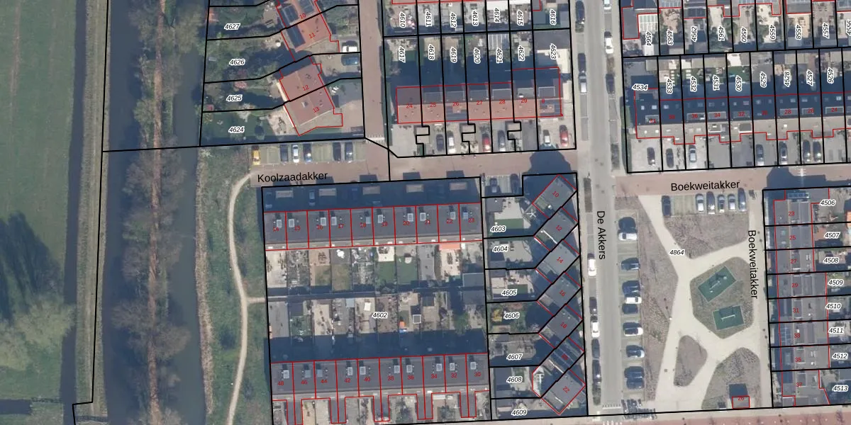 Koolzaadakker 21 is gelegen op kadastraal perceel SDM01Q4602. Deze kadastrale aanduiding is uniek en wordt gebruikt door het Kadaster om eigendomsrechten en andere zakelijke rechten vast te leggen. Het perceel maakt onderdeel uit van de kadastrale gemeente Schiedam.