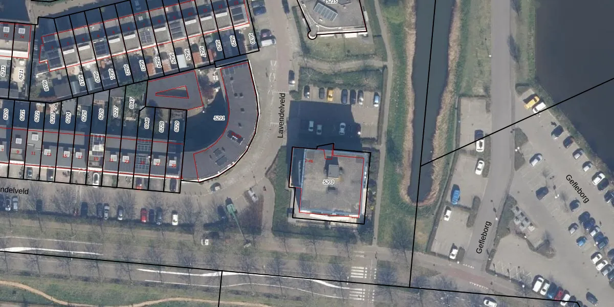 Lavendelveld 30 is gelegen op kadastraal perceel SDM01Q5203. Deze kadastrale aanduiding is uniek en wordt gebruikt door het Kadaster om eigendomsrechten en andere zakelijke rechten vast te leggen. Het perceel maakt onderdeel uit van de kadastrale gemeente Schiedam.