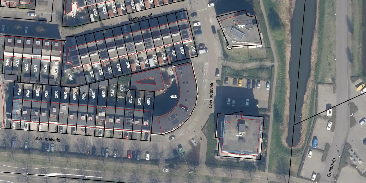Lavendelveld 43 is gelegen op kadastraal perceel SDM01Q5291. Deze kadastrale aanduiding is uniek en wordt gebruikt door het Kadaster om eigendomsrechten en andere zakelijke rechten vast te leggen. Het perceel maakt onderdeel uit van de kadastrale gemeente Schiedam.