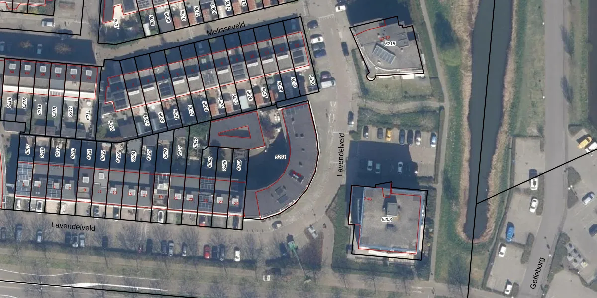 Het perceel waarop Lavendelveld 59 staat heeft een oppervlakte van 915 m². Dit is een groot perceel. De perceeloppervlakte wordt geregistreerd door het Kadaster. Gedetailleerde informatie over de maten van dit perceel kunt u vinden in het rapport Kadastrale kaart met maatvoering van Lavendelveld 59.