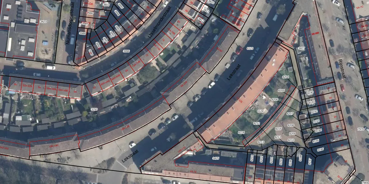 Het perceel waarop Lekstraat 102 staat heeft een oppervlakte van 5178 m². Dit is een zeer groot perceel. De perceeloppervlakte wordt geregistreerd door het Kadaster. Gedetailleerde informatie over de maten van dit perceel kunt u vinden in het rapport Kadastrale kaart met maatvoering van Lekstraat 102.