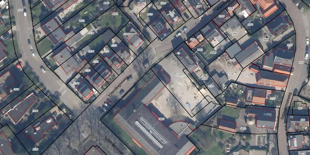 Het adres is gelegen op perceel 3882 in de sectie Q en de kadastrale gemeente Schiedam. De kadastrale aanduiding is aldus SDM01-Q-3882. Het perceel is met 2608 m² relatief groot. Het gemiddelde ligt in de kadastrale gemeente Schiedam op 1011,07 m². Het grootste perceel in de kadastrale gemeente is 53,5 ha. Het kleinste perceel heeft een oppervlakte van 0 m². Op het perceel liggen in totaal 2 adressen. De huidige grenzen van het perceel zijn digitaal in de Basisregistratie Kadaster (BRK) geregistreerd op 25-02-2003.