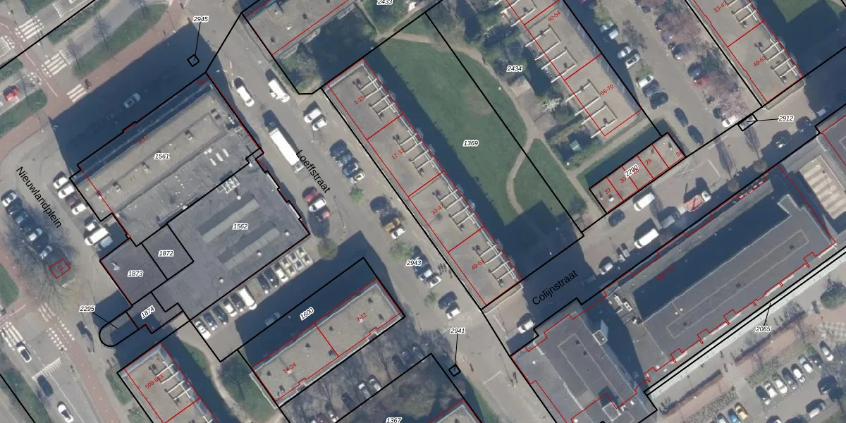 Het perceel waarop Loeffstraat 45 staat heeft een oppervlakte van 1943 m². Dit is een zeer groot perceel. De perceeloppervlakte wordt geregistreerd door het Kadaster. Gedetailleerde informatie over de maten van dit perceel kunt u vinden in het rapport Kadastrale kaart met maatvoering van Loeffstraat 45.