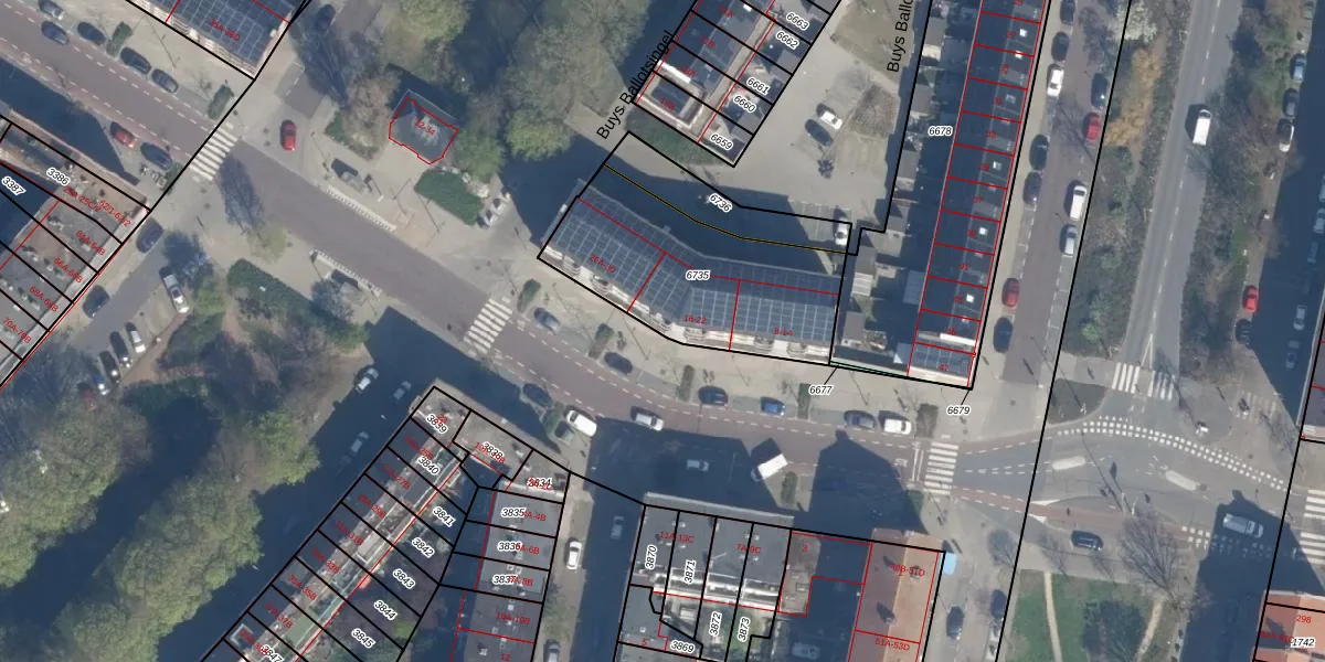 Het adres is gelegen op perceel 6735 in de sectie I en de kadastrale gemeente Schiedam. De kadastrale aanduiding is aldus SDM01-I-6735. Het perceel is 771 m² groot. Dat is kleiner dan de gemiddelde perceeloppervlakte in Schiedam, dat op 1011,07 m² ligt. Het kleinste perceel in de kadastrale gemeente is 0 m² groot. De grootste perceeloppervlakte is 53,5 ha. Op het perceel zijn 24 adressen aanwezig. De huidige grenzen van het perceel zijn digitaal in de Basisregistratie Kadaster (BRK) geregistreerd op 11-05-2023.