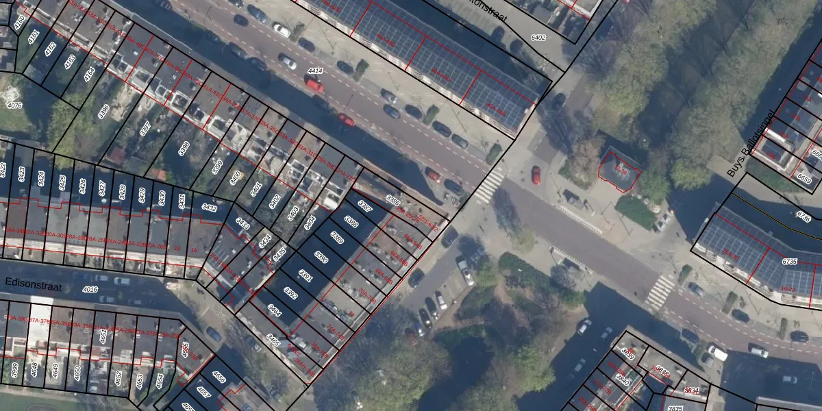 Het adres is gelegen op perceel 3386 in de sectie I en de kadastrale gemeente Schiedam. De kadastrale aanduiding is aldus SDM01-I-3386. Het perceel is 141 m² groot. Dat is kleiner dan de gemiddelde perceeloppervlakte in Schiedam, dat op 1011,07 m² ligt. Het kleinste perceel in de kadastrale gemeente is 0 m² groot. De grootste perceeloppervlakte is 53,5 ha. Op het perceel zijn 5 adressen aanwezig. De huidige grenzen van het perceel zijn digitaal in de Basisregistratie Kadaster (BRK) geregistreerd op 27-01-2003.