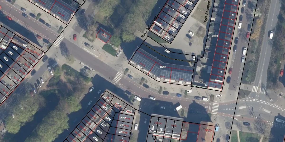 Het adres is gelegen op perceel 6735 in de sectie I en de kadastrale gemeente Schiedam. De kadastrale aanduiding is aldus SDM01-I-6735. Het perceel is 771 m² groot. Dat is kleiner dan de gemiddelde perceeloppervlakte in Schiedam, dat op 1011,07 m² ligt. Het kleinste perceel in de kadastrale gemeente is 0 m² groot. De grootste perceeloppervlakte is 53,5 ha. Op het perceel liggen in totaal 24 adressen. De huidige grenzen van het perceel zijn digitaal in de Basisregistratie Kadaster (BRK) geregistreerd op 11-05-2023.