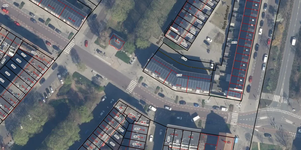 Het adres is gelegen op perceel 6735 in de sectie I en de kadastrale gemeente Schiedam. De kadastrale aanduiding is aldus SDM01-I-6735. Het perceel is 771 m² groot. Dat is kleiner dan de gemiddelde perceeloppervlakte in Schiedam, dat op 1011,02 m² ligt. Het kleinste perceel in de kadastrale gemeente is 0 m² groot. De grootste perceeloppervlakte is 53,5 ha. Er zijn 24 adressen aanwezig op het perceel. In de Basisregistratie Kadaster (BRK) werden de grenzen van het perceel geregistreerd op 11-05-2023.