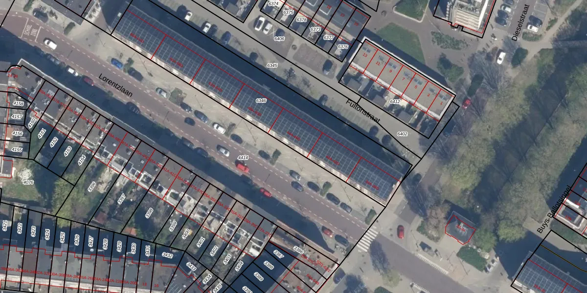 Lorentzlaan 44-A is gelegen op kadastraal perceel SDM01I6346. Deze kadastrale aanduiding is uniek en wordt gebruikt door het Kadaster om eigendomsrechten en andere zakelijke rechten vast te leggen. Het perceel maakt onderdeel uit van de kadastrale gemeente Schiedam.