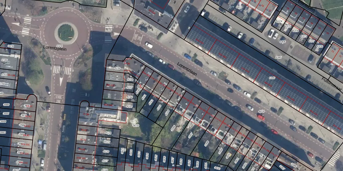 Lorentzlaan 53-B is gelegen op kadastraal perceel SDM01I4163. Deze kadastrale aanduiding is uniek en wordt gebruikt door het Kadaster om eigendomsrechten en andere zakelijke rechten vast te leggen. Het perceel maakt onderdeel uit van de kadastrale gemeente Schiedam.