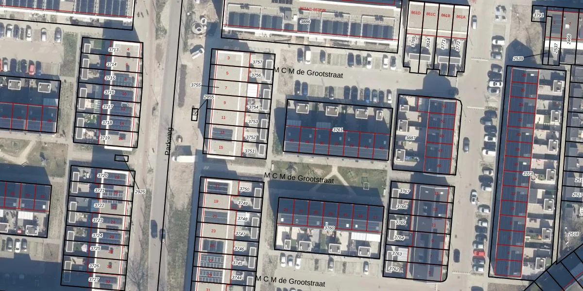 M C M de Grootstraat 31 is gelegen op kadastraal perceel SDM01H3761. Deze kadastrale aanduiding is uniek en wordt gebruikt door het Kadaster om eigendomsrechten en andere zakelijke rechten vast te leggen. Het perceel maakt onderdeel uit van de kadastrale gemeente Schiedam.
