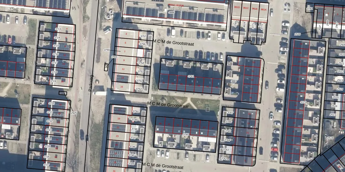 M C M de Grootstraat 33 is gelegen op kadastraal perceel SDM01H3761. Deze kadastrale aanduiding is uniek en wordt gebruikt door het Kadaster om eigendomsrechten en andere zakelijke rechten vast te leggen. Het perceel maakt onderdeel uit van de kadastrale gemeente Schiedam.