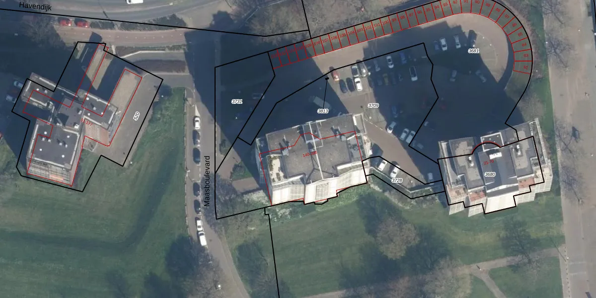 Het perceel waarop Maasboulevard 197 staat heeft een oppervlakte van 2524 m². Dit is een zeer groot perceel. De perceeloppervlakte wordt geregistreerd door het Kadaster. Gedetailleerde informatie over de maten van dit perceel kunt u vinden in het rapport Kadastrale kaart met maatvoering van Maasboulevard 197.