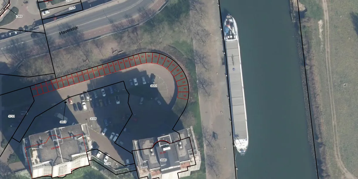 Het perceel waarop Maasboulevard 83 staat heeft een oppervlakte van 2435 m². Dit is een zeer groot perceel. De perceeloppervlakte wordt geregistreerd door het Kadaster. Gedetailleerde informatie over de maten van dit perceel kunt u vinden in het rapport Kadastrale kaart met maatvoering van Maasboulevard 83.