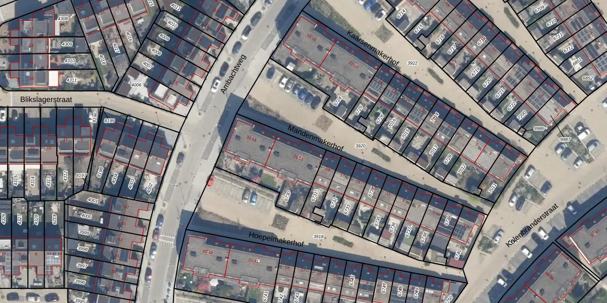 Het perceel waarop Mandenmakerhof 31 staat heeft een oppervlakte van 638 m². Dit is een groot perceel. De perceeloppervlakte wordt geregistreerd door het Kadaster. Gedetailleerde informatie over de maten van dit perceel kunt u vinden in het rapport Kadastrale kaart met maatvoering van Mandenmakerhof 31.