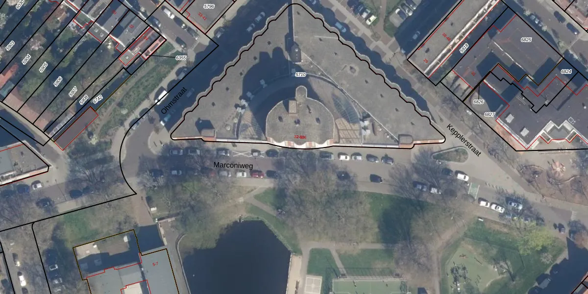 Het perceel waarop Marconiweg 14 staat heeft een oppervlakte van 2487 m². Dit is een zeer groot perceel. De perceeloppervlakte wordt geregistreerd door het Kadaster. Gedetailleerde informatie over de maten van dit perceel kunt u vinden in het rapport Kadastrale kaart met maatvoering van Marconiweg 14.