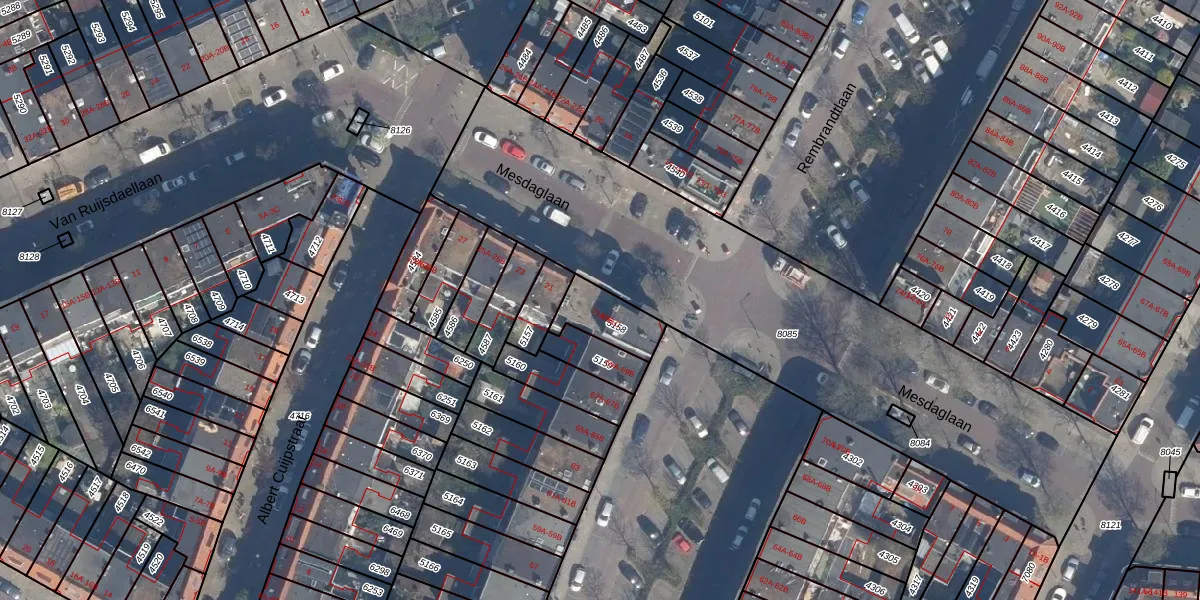 Het perceel waarop Mesdaglaan 19-B staat heeft een oppervlakte van 132 m². Dit is een middelgroot perceel. De perceeloppervlakte wordt geregistreerd door het Kadaster. Gedetailleerde informatie over de maten van dit perceel kunt u vinden in het rapport Kadastrale kaart met maatvoering van Mesdaglaan 19-B.