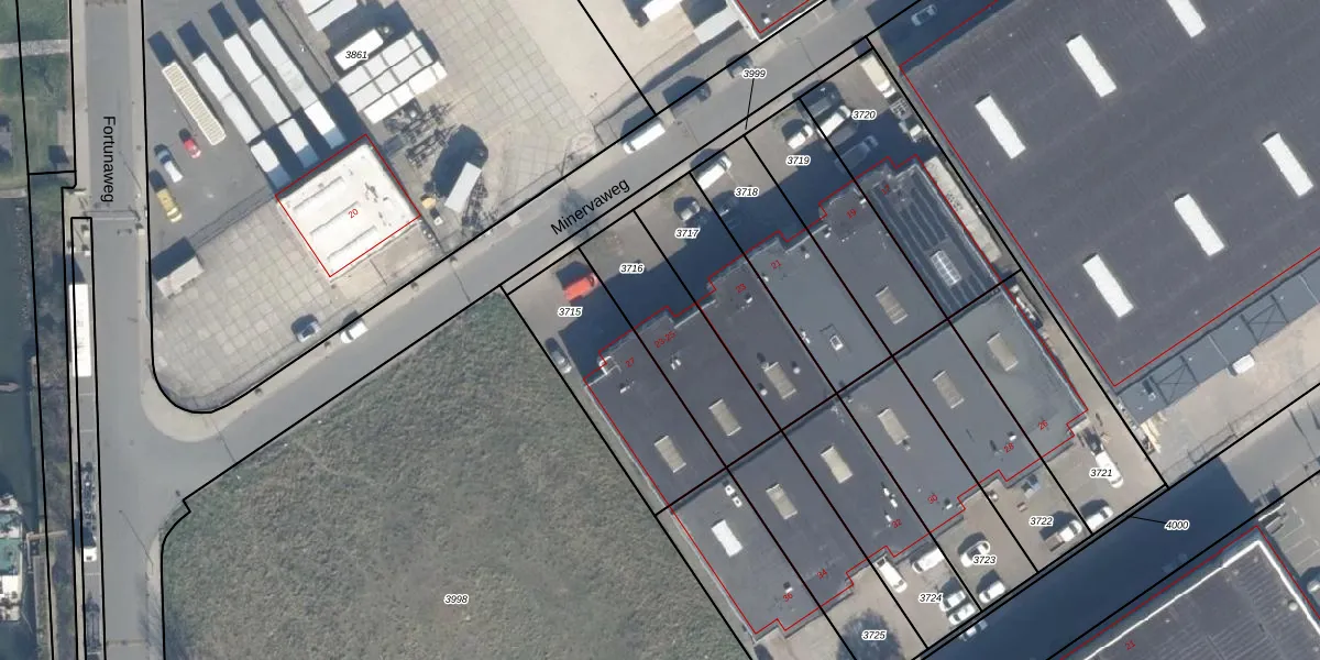 Minervaweg 25 is gelegen op kadastraal perceel SDM01L3716. Deze kadastrale aanduiding is uniek en wordt gebruikt door het Kadaster om eigendomsrechten en andere zakelijke rechten vast te leggen. Het perceel maakt onderdeel uit van de kadastrale gemeente Schiedam.