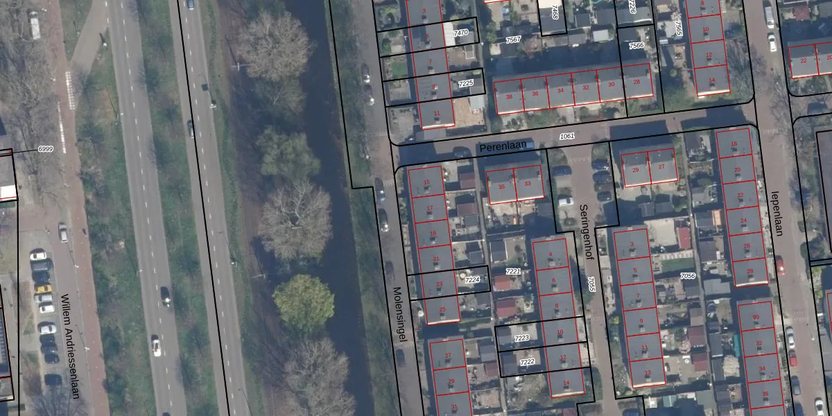 Het perceel waarop Molensingel 17 staat heeft een oppervlakte van 2674 m². Dit is een zeer groot perceel. De perceeloppervlakte wordt geregistreerd door het Kadaster. Gedetailleerde informatie over de maten van dit perceel kunt u vinden in het rapport Kadastrale kaart met maatvoering van Molensingel 17.