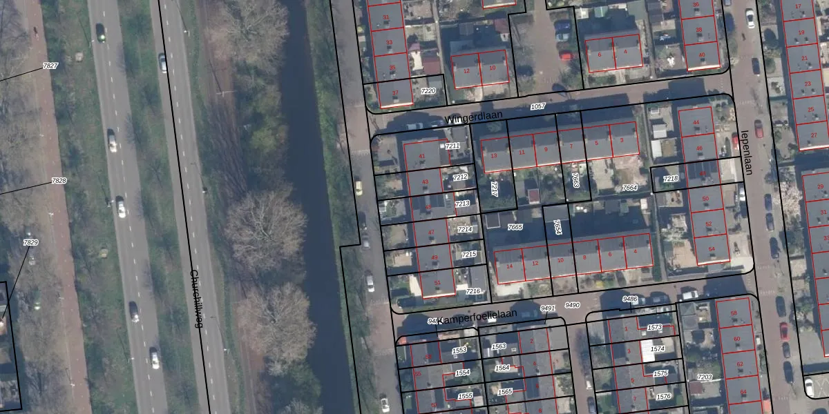 Het adres is gelegen op perceel 7213 in de sectie Q en de kadastrale gemeente Schiedam. De kadastrale aanduiding is aldus SDM01-Q-7213. De gemiddelde perceelgrootte in Schiedam is 1011,07 m². Dit perceel is kleiner: de perceeloppervlakte bedraagt 150 m². De grootste perceeloppervlakte in de kadastrale gemeente is 53,5 ha. De kleinste oppervlakte bedraagt 0 m². Er zijn geen andere adressen aanwezig op het perceel. De laatste wijziging in het de Basisregistratie Kadaster (BRK) was op 18-07-2003.