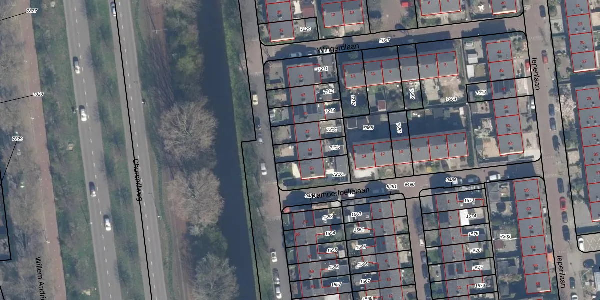 Het adres is gelegen op perceel 7215 in de sectie Q en de kadastrale gemeente Schiedam. De kadastrale aanduiding is aldus SDM01-Q-7215. De gemiddelde perceelgrootte in Schiedam is 1011,07 m². Dit perceel is kleiner: de perceeloppervlakte bedraagt 150 m². De grootste perceeloppervlakte in de kadastrale gemeente is 53,5 ha. De kleinste oppervlakte bedraagt 0 m². Er zijn geen andere adressen aanwezig op het perceel. De huidige grenzen van het perceel zijn digitaal in de Basisregistratie Kadaster (BRK) geregistreerd op 18-07-2003.