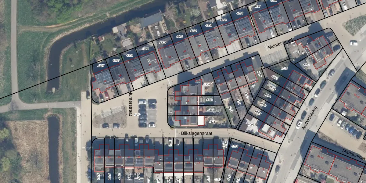 Gebruik de zoekbalk of klik op een perceel voor informatie over de adressen binnen dit perceel.