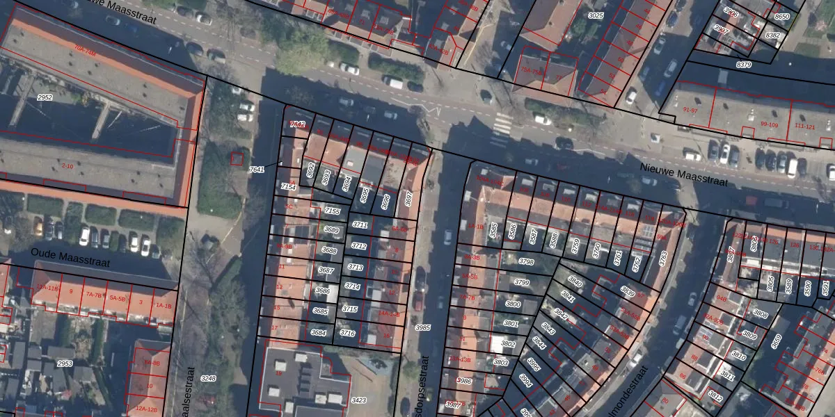 Het adres is gelegen op perceel 3697 in de sectie M en de kadastrale gemeente Schiedam. De kadastrale aanduiding is aldus SDM01-M-3697. Het perceel is kleiner dan gemiddeld in Schiedam. Het perceel is 101 m² groot, terwijl het gemiddelde ligt op 1011,07 m². De grootste perceeloppervlakte in de kadastrale gemeente is 53,5 ha. De kleinste oppervlakte bedraagt 0 m². Er zijn 3 adressen aanwezig op het perceel. In de Basisregistratie Kadaster (BRK) werden de grenzen van het perceel geregistreerd op 01-10-1998.