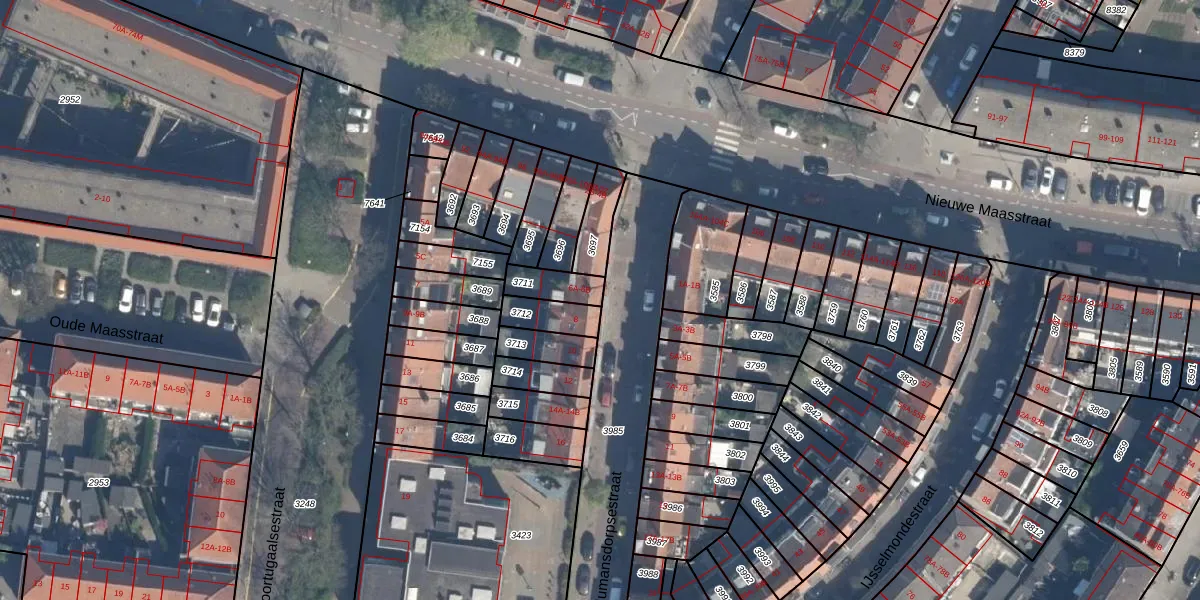 Het adres is gelegen op perceel 3711 in de sectie M en de kadastrale gemeente Schiedam. De kadastrale aanduiding is aldus SDM01-M-3711. Het perceel is kleiner dan gemiddeld in Schiedam. Het perceel is 86 m² groot, terwijl het gemiddelde ligt op 1011,07 m². De grootste perceeloppervlakte in de kadastrale gemeente is 53,5 ha. De kleinste oppervlakte bedraagt 0 m². Er zijn 2 adressen aanwezig op het perceel. In de Basisregistratie Kadaster (BRK) werden de grenzen van het perceel geregistreerd op 01-10-1998.