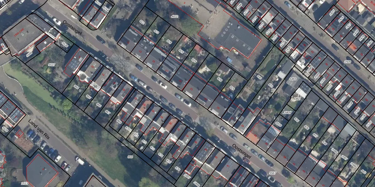 Het perceel waarop Oostsingel 21 staat heeft een oppervlakte van 213 m². Dit is een middelgroot perceel. De perceeloppervlakte wordt geregistreerd door het Kadaster. Gedetailleerde informatie over de maten van dit perceel kunt u vinden in het rapport Kadastrale kaart met maatvoering van Oostsingel 21.