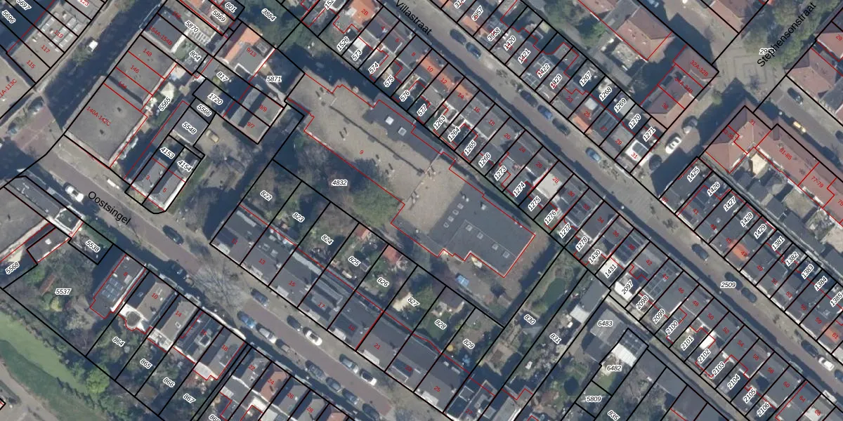 Het perceel waarop Oostsingel 9-K staat heeft een oppervlakte van 2046 m². Dit is een zeer groot perceel. De perceeloppervlakte wordt geregistreerd door het Kadaster. Gedetailleerde informatie over de maten van dit perceel kunt u vinden in het rapport Kadastrale kaart met maatvoering van Oostsingel 9-K.