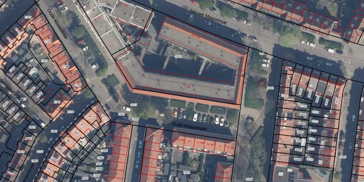 Het perceel waarop Oude Maasstraat 8 staat heeft een oppervlakte van 2488 m². Dit is een zeer groot perceel. De perceeloppervlakte wordt geregistreerd door het Kadaster. Gedetailleerde informatie over de maten van dit perceel kunt u vinden in het rapport Kadastrale kaart met maatvoering van Oude Maasstraat 8.