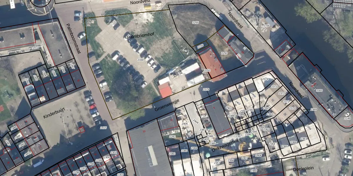 Het perceel waarop Palmboomhof 1 staat heeft een oppervlakte van 2831 m². Dit is een zeer groot perceel. De perceeloppervlakte wordt geregistreerd door het Kadaster. Gedetailleerde informatie over de maten van dit perceel kunt u vinden in het rapport Kadastrale kaart met maatvoering van Palmboomhof 1.