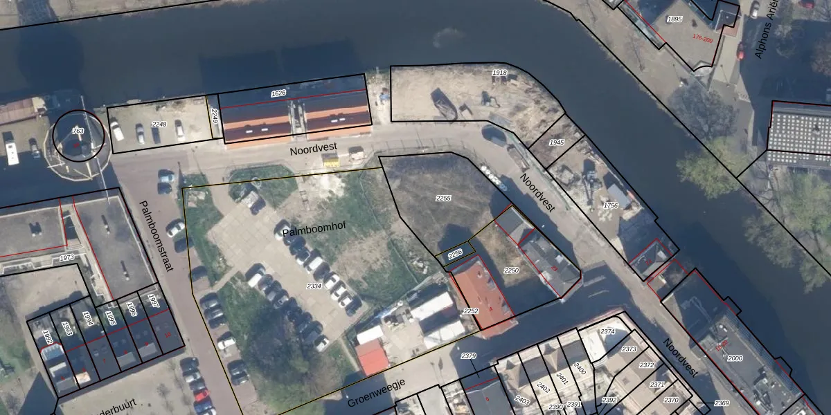 Het perceel waarop het adres ligt is SDM01-A-2255. De afkorting 'SDM01' staat voor kadastrale gemeente Schiedam. De gemiddelde perceelgrootte in Schiedam is 1011,07 m². Dit perceel is kleiner: de perceeloppervlakte bedraagt 501 m². Het grootste perceel in de kadastrale gemeente is 53,5 ha. Het kleinste perceel heeft een oppervlakte van 0 m². Op het perceel zijn 7 adressen aanwezig. In de Basisregistratie Kadaster (BRK) werden de grenzen van het perceel geregistreerd op 15-12-2022.
