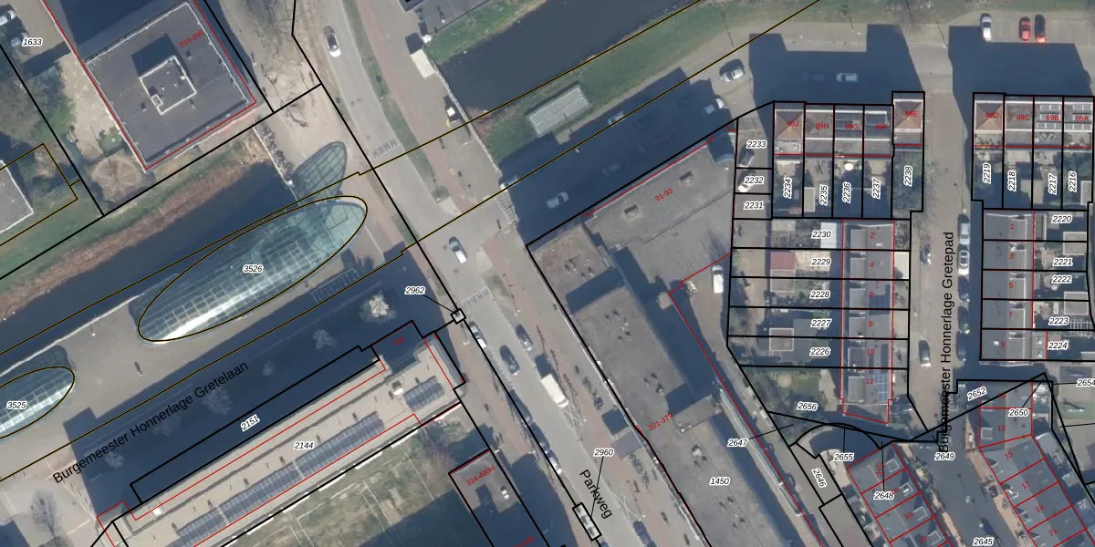Het perceel waarop Parkweg 201 staat heeft een oppervlakte van 2748 m². Dit is een zeer groot perceel. De perceeloppervlakte wordt geregistreerd door het Kadaster. Gedetailleerde informatie over de maten van dit perceel kunt u vinden in het rapport Kadastrale kaart met maatvoering van Parkweg 201.