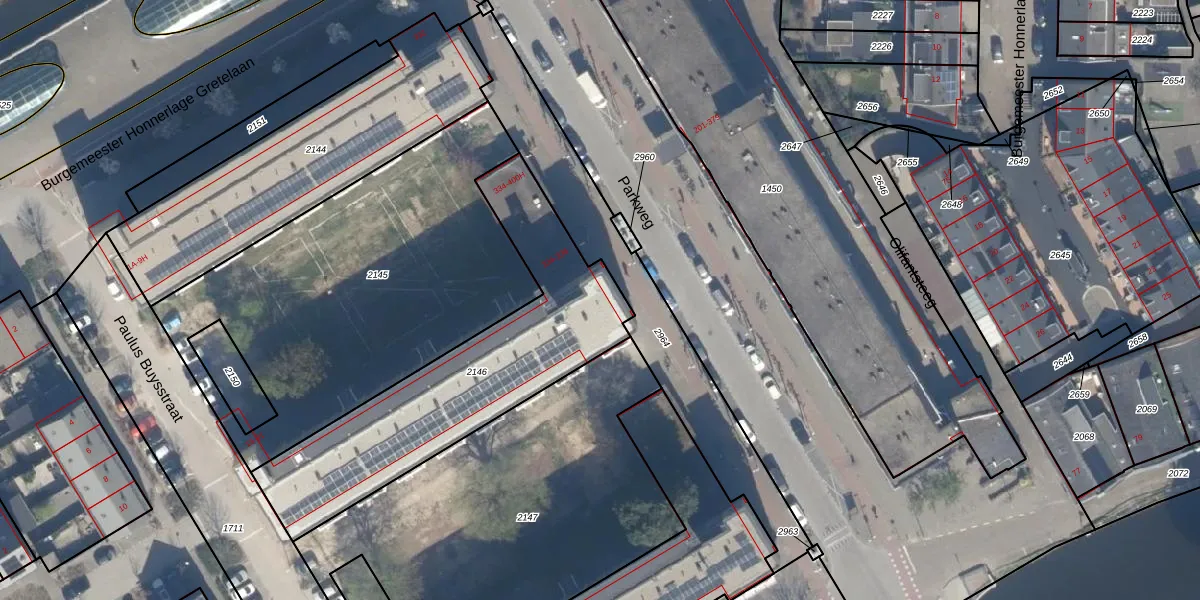 Parkweg 338 is gelegen op kadastraal perceel SDM01H2146. Deze kadastrale aanduiding is uniek en wordt gebruikt door het Kadaster om eigendomsrechten en andere zakelijke rechten vast te leggen. Het perceel maakt onderdeel uit van de kadastrale gemeente Schiedam.
