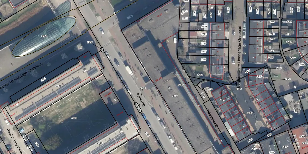 Het perceel waarop Parkweg 355 staat heeft een oppervlakte van 2748 m². Dit is een zeer groot perceel. De perceeloppervlakte wordt geregistreerd door het Kadaster. Gedetailleerde informatie over de maten van dit perceel kunt u vinden in het rapport Kadastrale kaart met maatvoering van Parkweg 355.