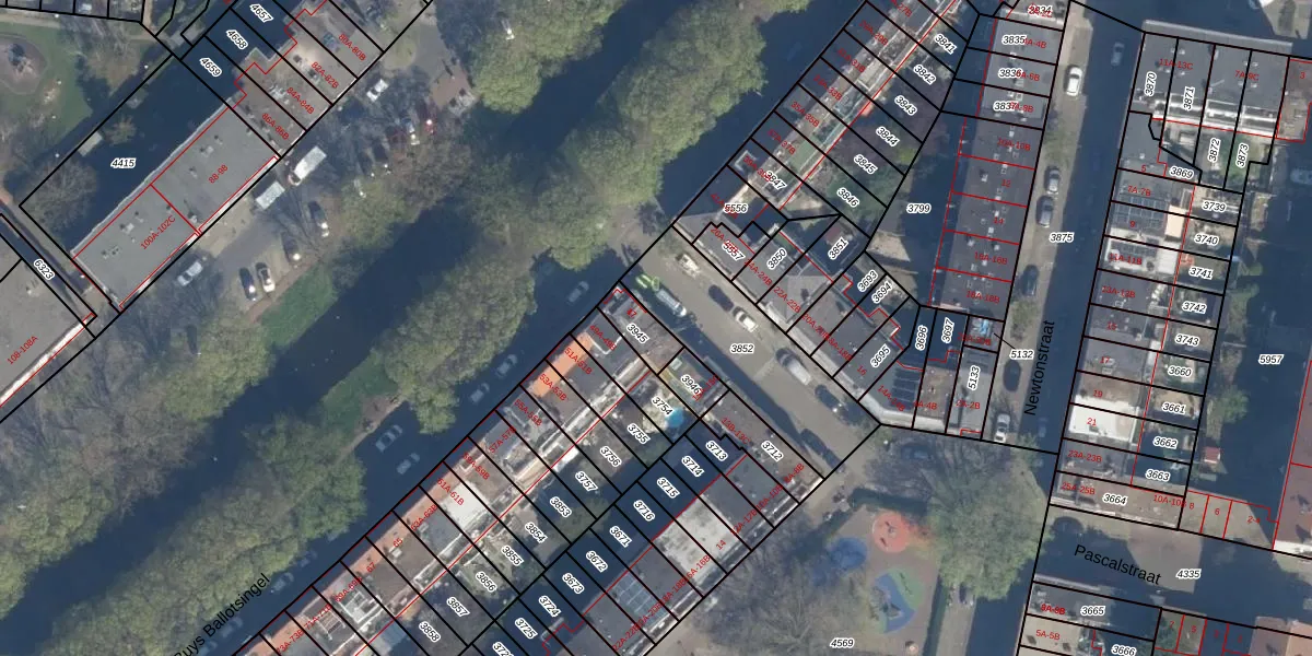 Het perceel waarop Pascalstraat 17 staat heeft een oppervlakte van 78 m². Dit is een klein perceel. De perceeloppervlakte wordt geregistreerd door het Kadaster. Gedetailleerde informatie over de maten van dit perceel kunt u vinden in het rapport Kadastrale kaart met maatvoering van Pascalstraat 17.