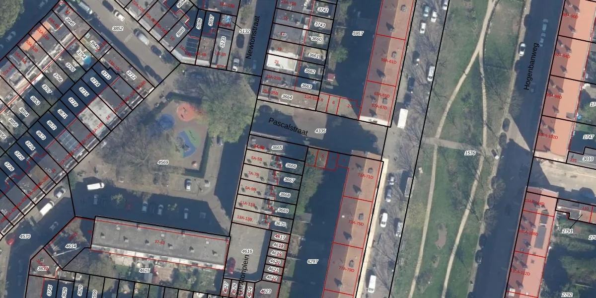 Het perceel waarop Pascalstraat 9-B staat heeft een oppervlakte van 102 m². Dit is een middelgroot perceel. De perceeloppervlakte wordt geregistreerd door het Kadaster. Gedetailleerde informatie over de maten van dit perceel kunt u vinden in het rapport Kadastrale kaart met maatvoering van Pascalstraat 9-B.