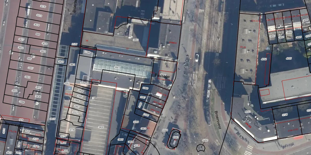 Passage 20 is gelegen op kadastraal perceel SDM01B3666. Deze kadastrale aanduiding is uniek en wordt gebruikt door het Kadaster om eigendomsrechten en andere zakelijke rechten vast te leggen. Het perceel maakt onderdeel uit van de kadastrale gemeente Schiedam.