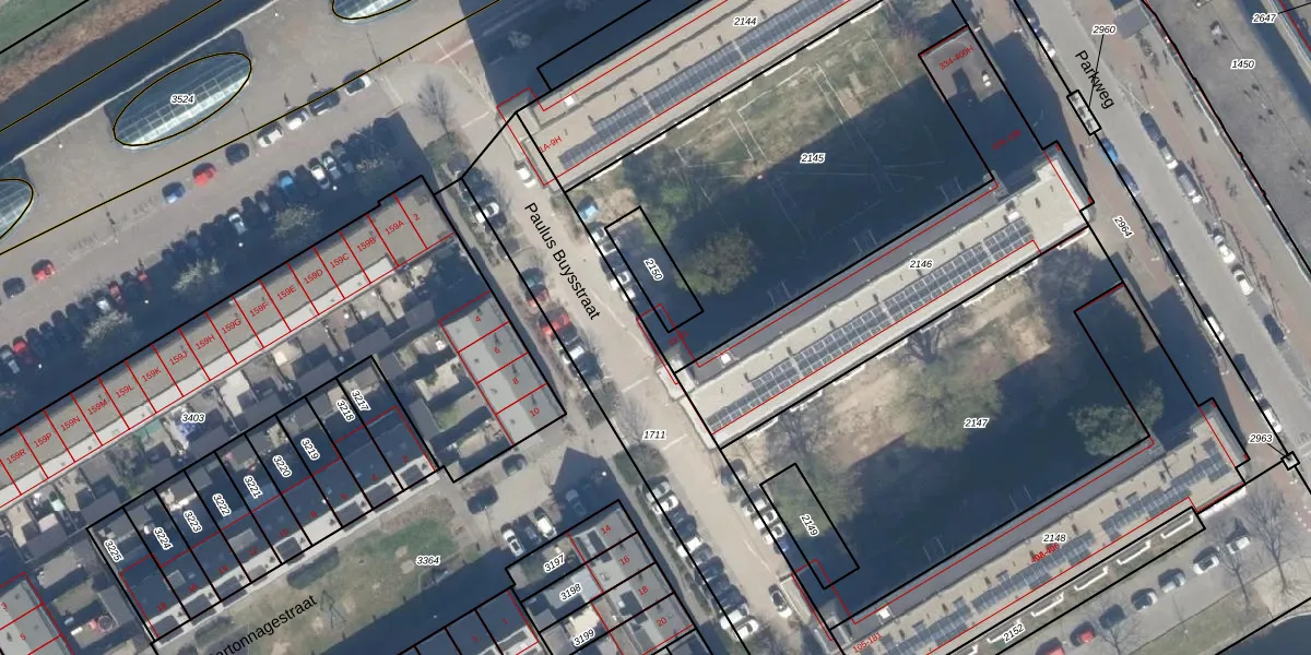 Het perceel waarop Paulus Buysstraat 21 staat heeft een oppervlakte van 1815 m². Dit is een zeer groot perceel. De perceeloppervlakte wordt geregistreerd door het Kadaster. Gedetailleerde informatie over de maten van dit perceel kunt u vinden in het rapport Kadastrale kaart met maatvoering van Paulus Buysstraat 21.