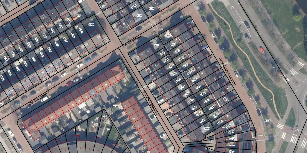 Gebruik de zoekbalk of klik op een perceel voor informatie over de adressen binnen dit perceel.